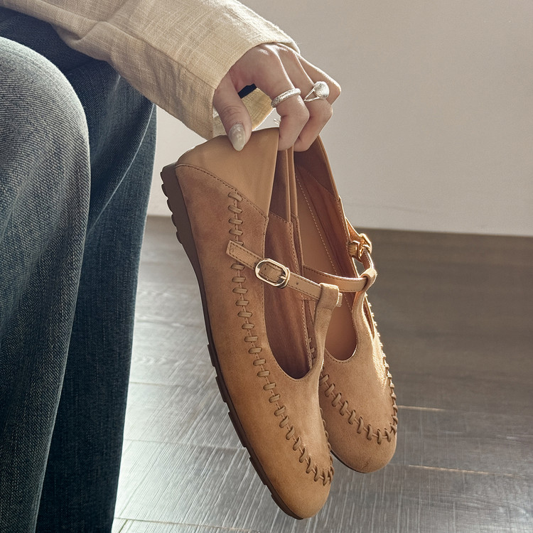 【网红】舒适软底羊翻皮单鞋