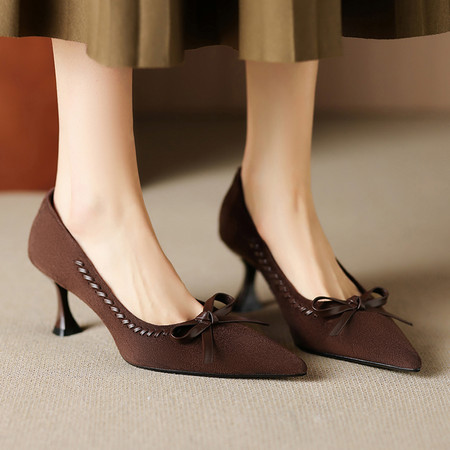 数据爆款蝴蝶结高跟尖头单鞋 羊皮里羊皮垫 40码不加价可退换