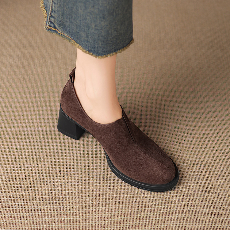 英伦风厚底粗跟深口单鞋女2026新款小皮鞋一脚蹬乐福鞋真皮女鞋子