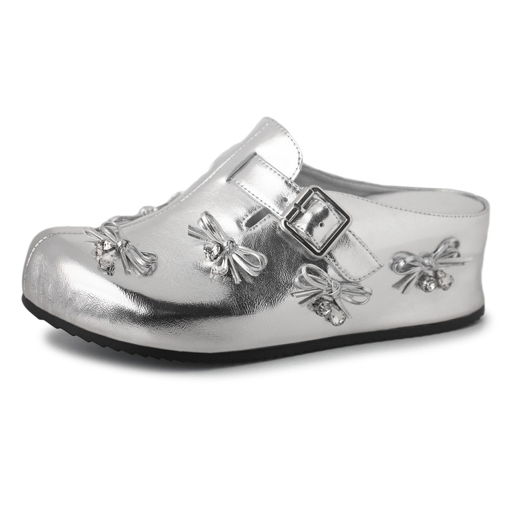【早春爆款 数据超好】厚底包头蝴蝶结花朵勃肯鞋 一脚蹬水钻穆勒半拖鞋 数据已测 上架即卖