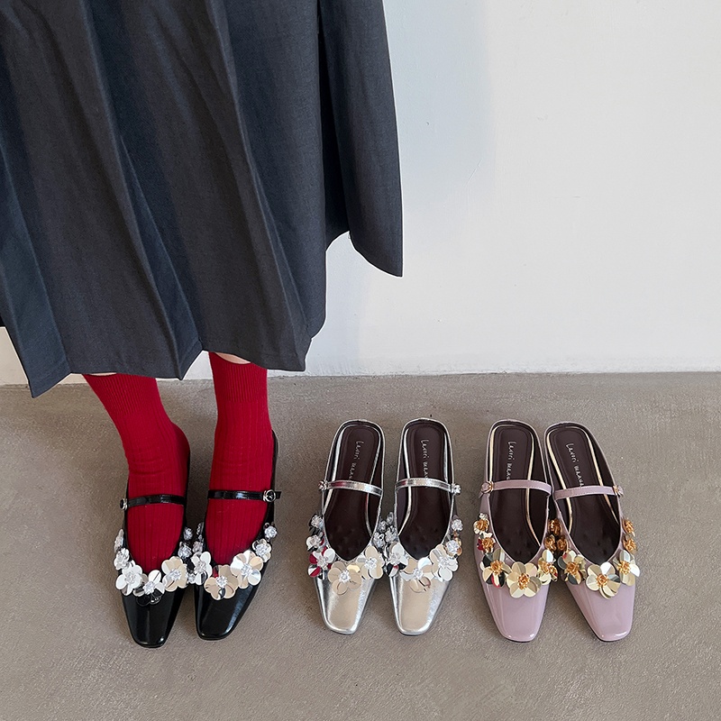 亮片系列~方头内增高一字带内增高包头拖鞋