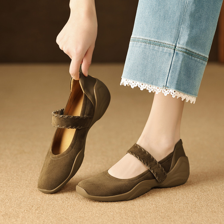 头层羊皮内增高浅口单鞋,羊绒休闲鞋