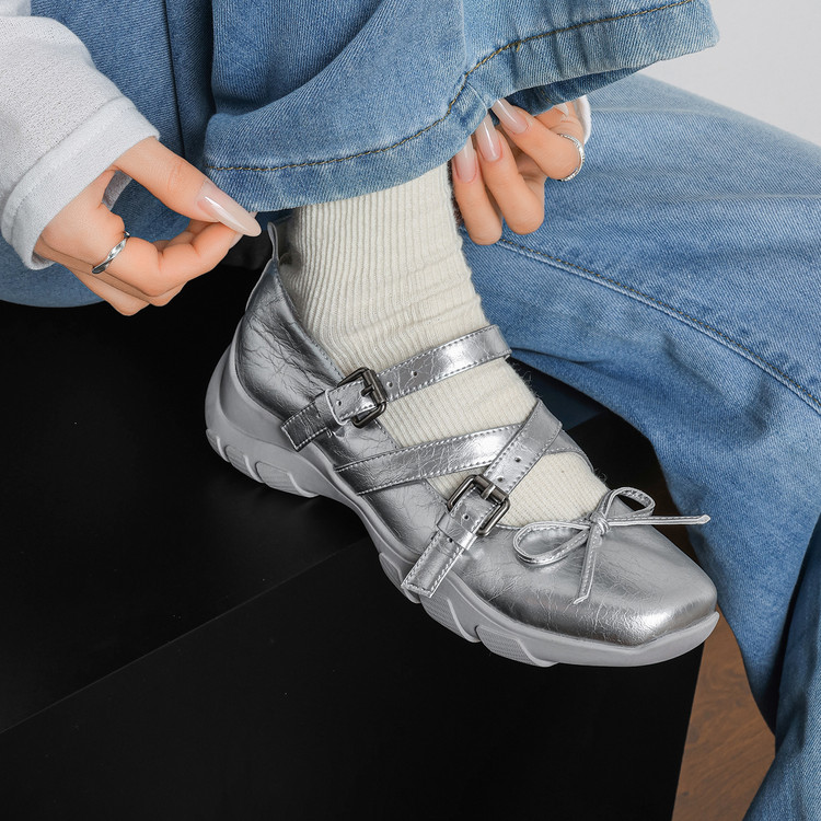 金属银日系内增高芭蕾舞玛丽珍鞋~现货