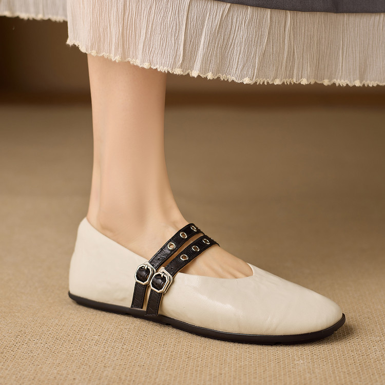 真皮复古平底单鞋