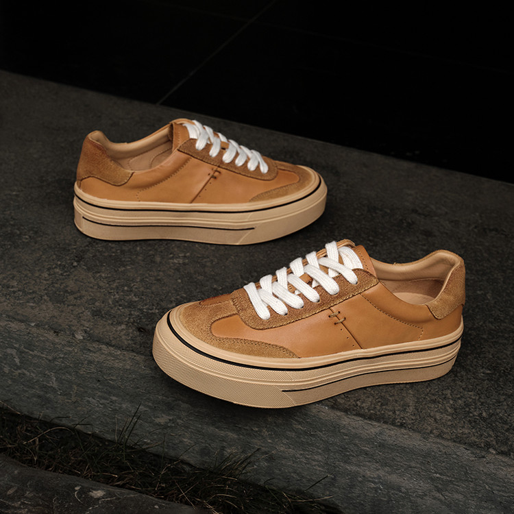小众流量款 里外全头层皮复古单鞋新款厚底增高休闲运动鞋