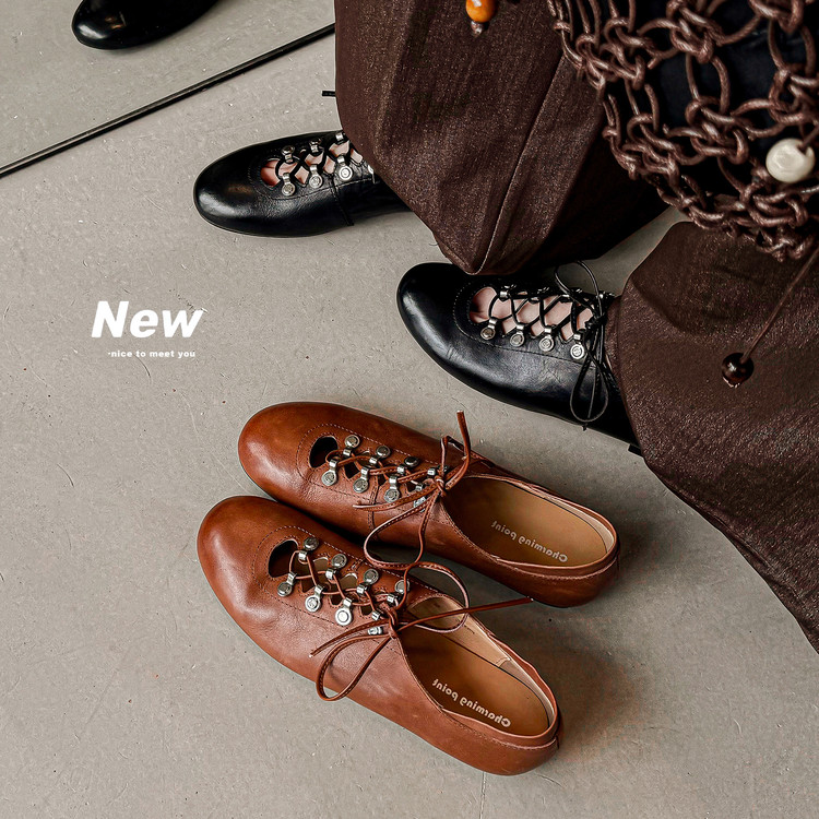 深口铆钉里外全皮擦色复古单鞋大码34-42