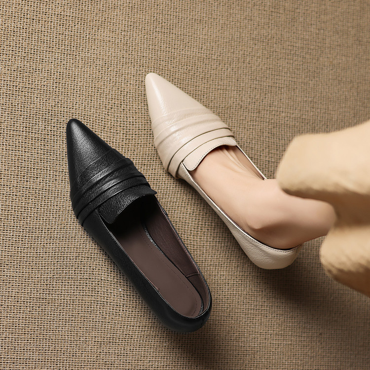 春秋新款软羊皮法式优雅高跟鞋简约百搭舒适5CM中跟尖头中口单鞋