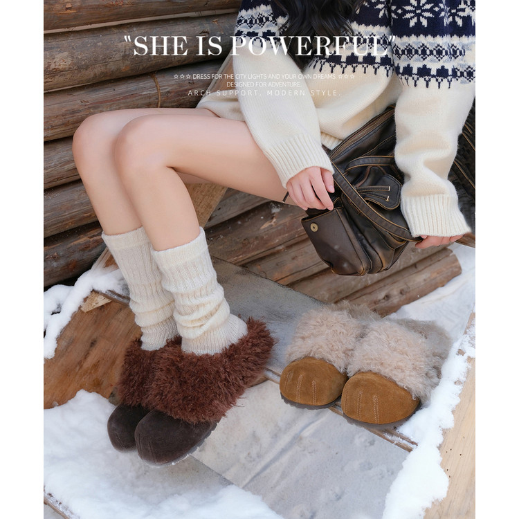 内增高,韩风毛毛~ 头层牛翻勃肯拖鞋