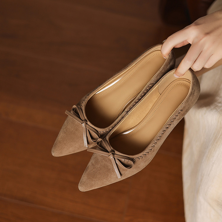 2026新款爆款鞋子粗跟浅口精致蝴蝶结高跟鞋尖头