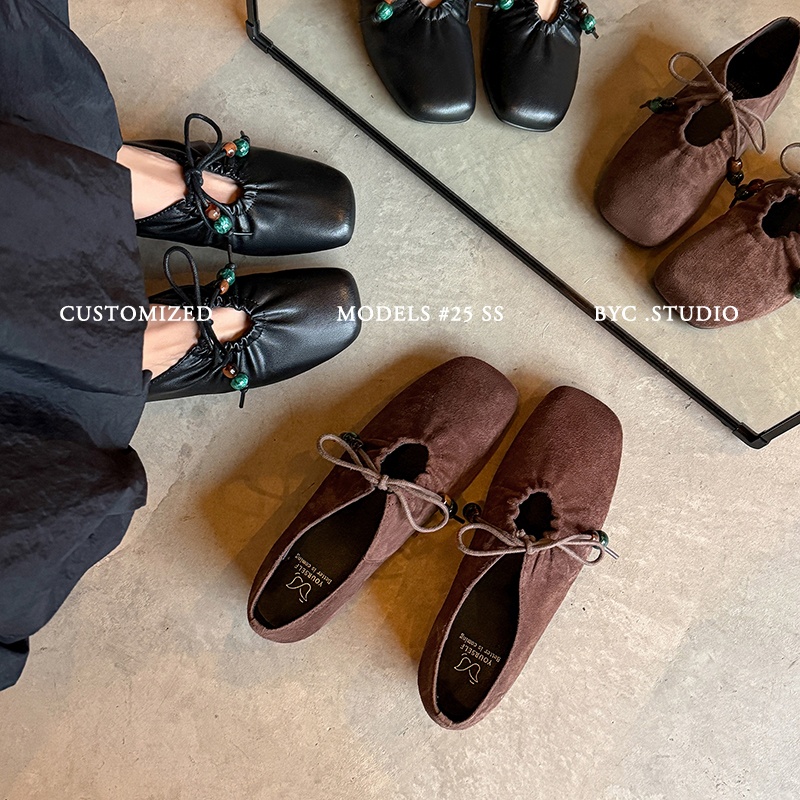 内增高羊皮版系带串珠奶奶鞋~~全现货~~