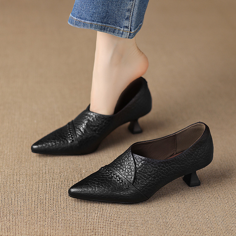 春秋新款法式复古高跟鞋优雅百搭防掉跟软底面真皮尖头中口单鞋女 现货