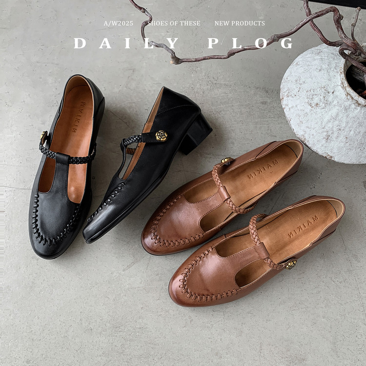里外全皮,头层水洗牛皮,低跟单鞋~