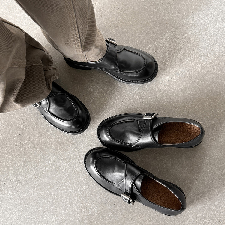 24小时发货~ 爆款新图~ 衔接春天~ 圆头深口厚底防水扣带中粗跟单鞋皮小鞋