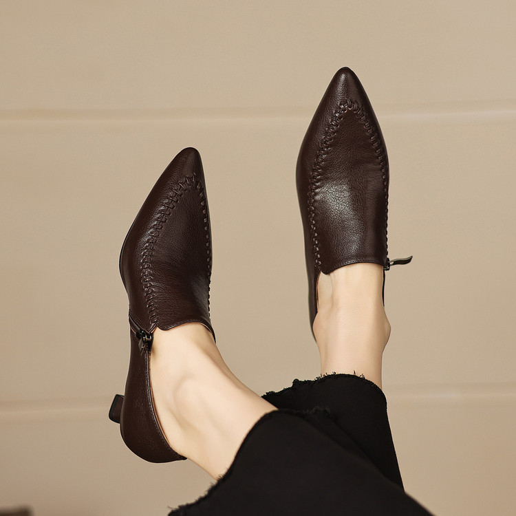 深口单鞋女粗跟小皮鞋2026年春秋季新款尖头高跟鞋不累脚女鞋软底