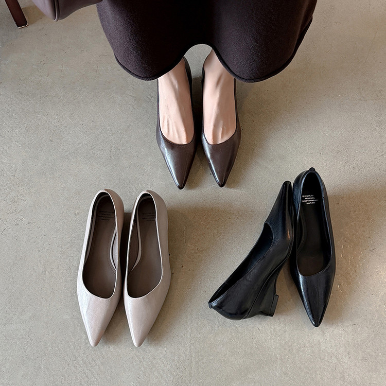 坡跟 浅口 单鞋 尖头 头层牛皮
