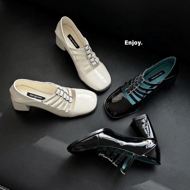 粗跟圆头玛丽珍一字带单鞋大码34-42