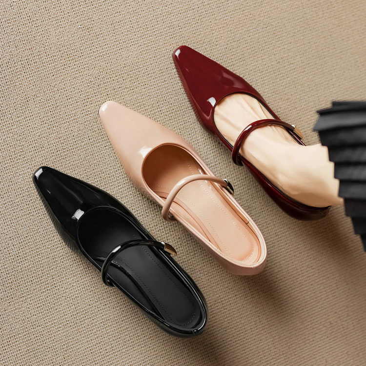 法式复古玛丽珍方头一字带粗跟单鞋 羊皮里羊皮垫 40码不加价可退换