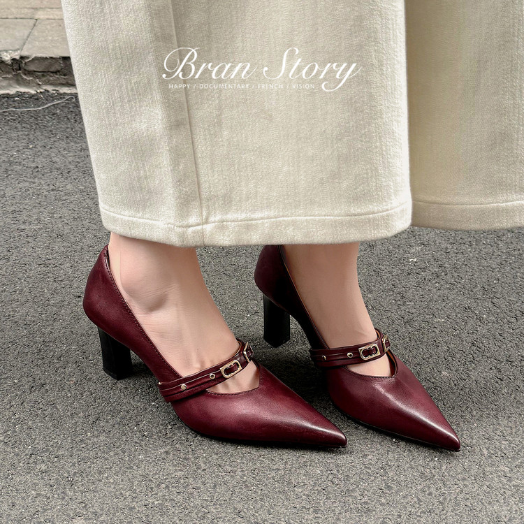 尖头细跟水洗擦色单鞋大码34-42