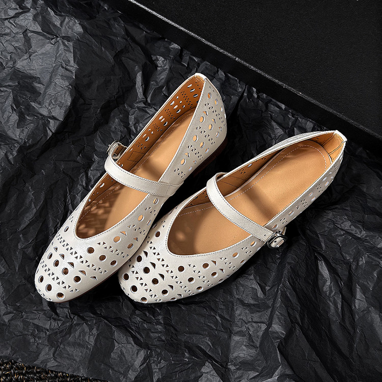里外全皮镂空单鞋