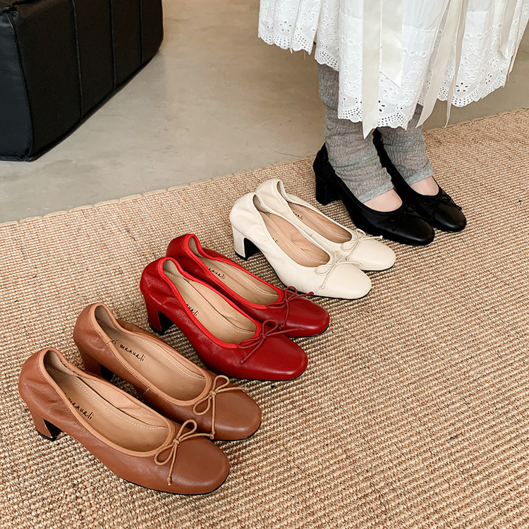 里外全头层~复古经典款蝴蝶结粗跟玛丽珍单鞋