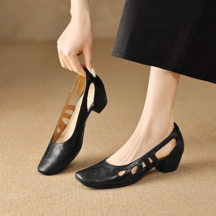 头层羊皮镂空凉鞋