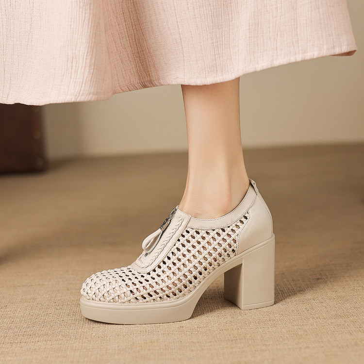 头层羊皮厚底洞洞单鞋