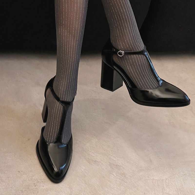 里外全皮三色中古风包头粗跟凉鞋~~T子带玛丽珍~~全现货