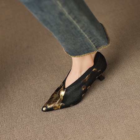 复古花卉印花尖头单鞋女2026春季新款一脚蹬马毛气质高跟鞋