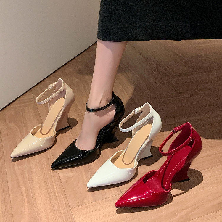 坡跟凉鞋里外全皮