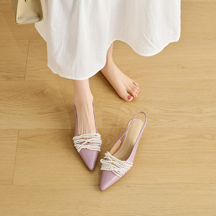 小众法式复古珍珠系列 尖头低跟小仙女鞋 包头凉鞋