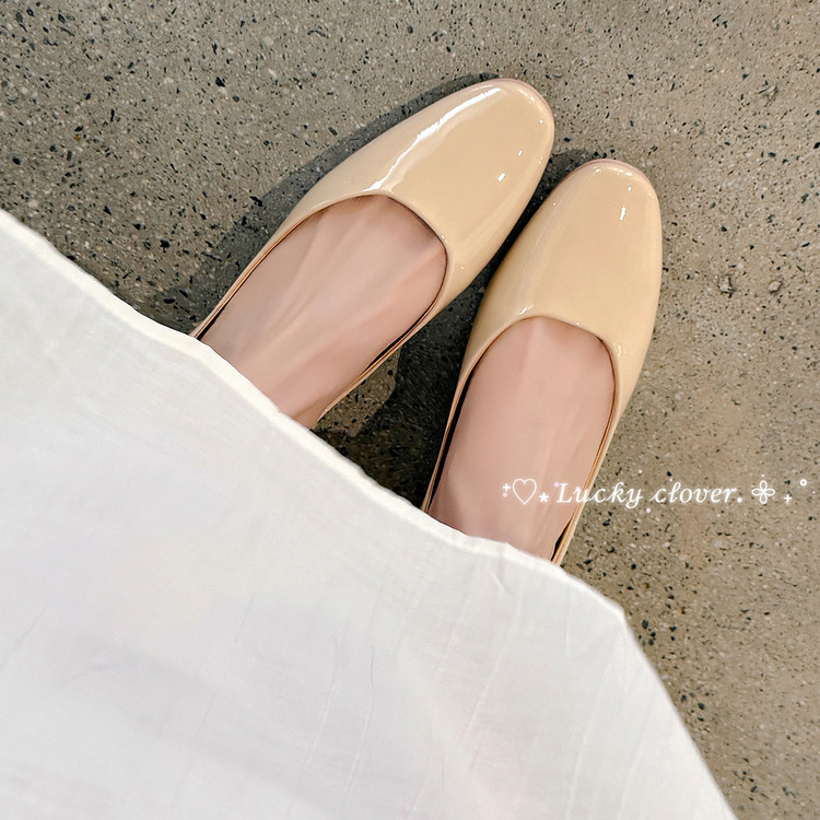 2026新款简约浅口单鞋 坡跟圆头女鞋牛皮春秋新款漆皮单鞋子