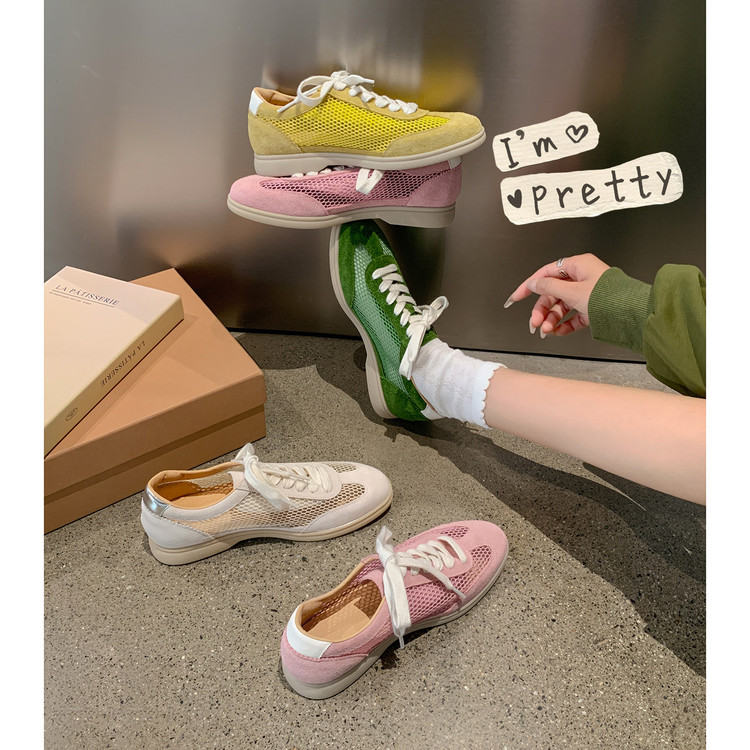 2026新款网面凉鞋女 平底圆头简约系带夏秋女鞋凉透气休闲运动鞋