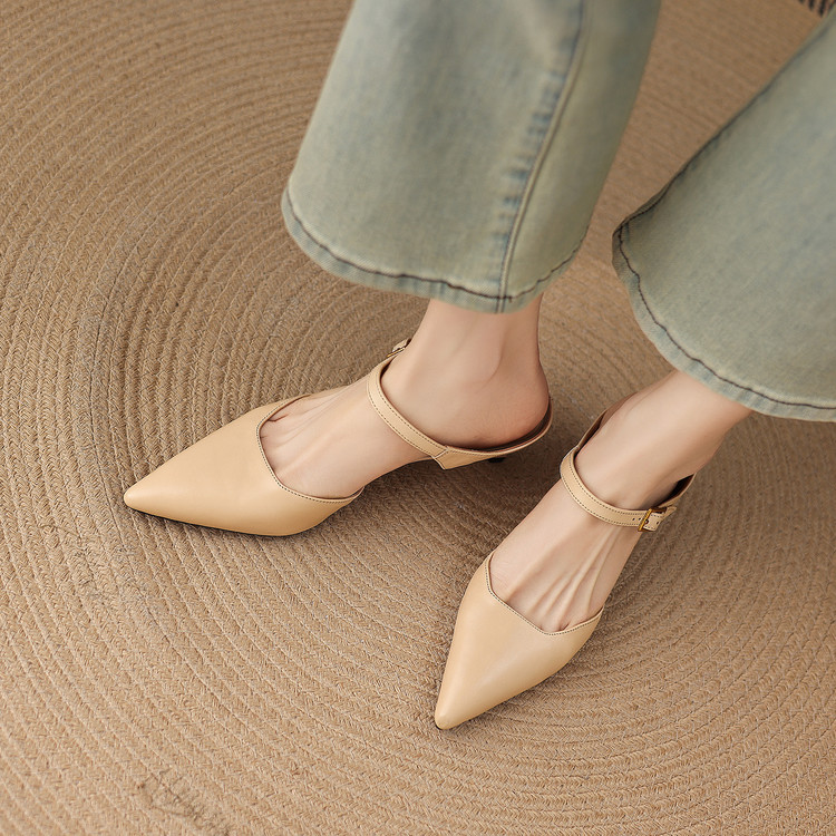 26春夏新款头层牛皮包头凉鞋拖鞋高跟鞋