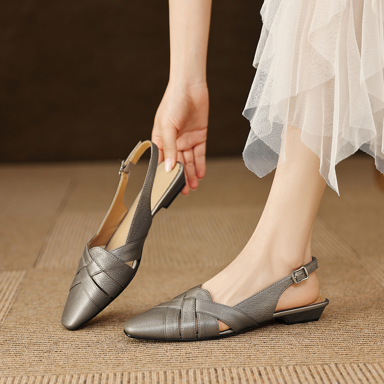 头层羊皮后空凉鞋