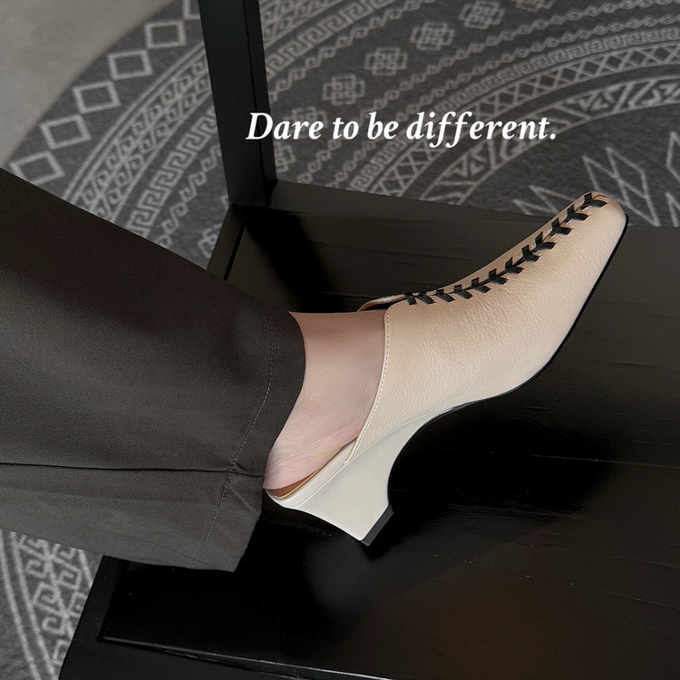 高粗跟方头凉鞋女 包头凉拖鞋 头层牛皮夏季女鞋凉拖鞋女 2026新款