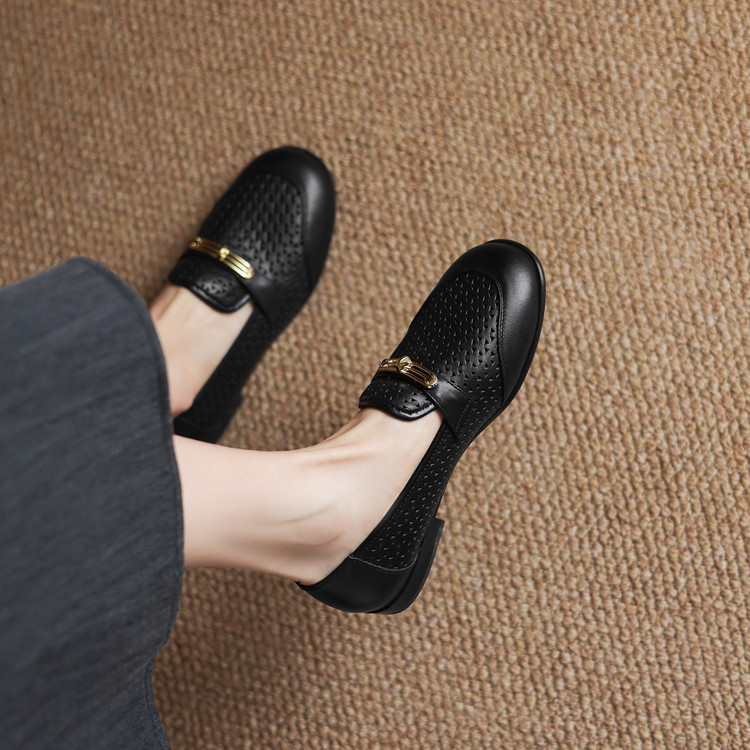 2026夏季新款镂空平底乐福鞋里外全皮