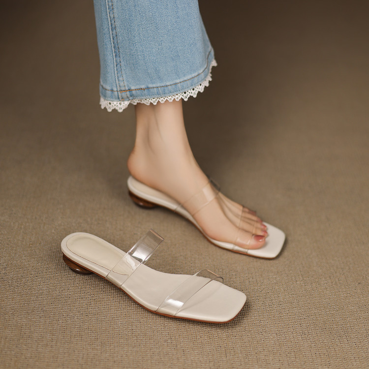 现货极简透明一字带凉鞋爆款