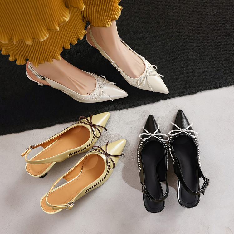 百丽气质高跟包头后空蝴蝶结凉鞋 羊皮里羊皮垫 40码不加价可退换
