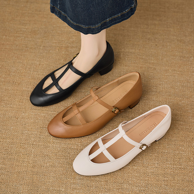 真皮复古粗跟凉鞋