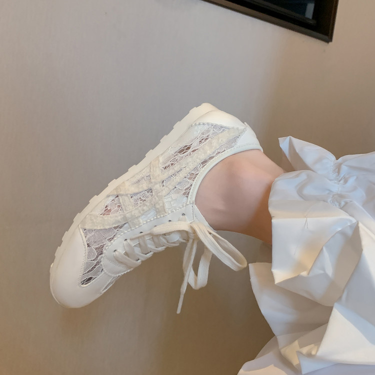 2026新款网面德训鞋女 牛皮透气春夏秋季女鞋系带 平底圆头休闲运动鞋女