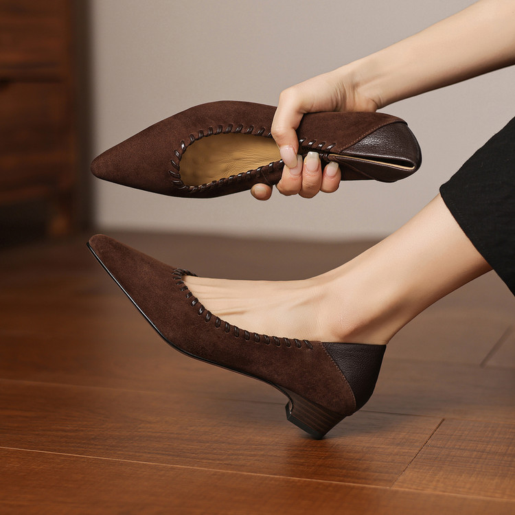 新款现货啦 低价跑量款编织羊反绒精致小跟浅口鞋