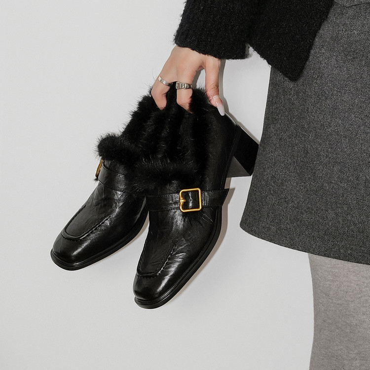 头层植鞣羊皮,真貂毛~ 静音底毛毛鞋