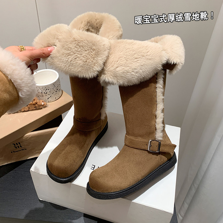 超厚超保暖!零下初雪~翻边厚底中高筒羊毛毛短靴女雪地靴长靴