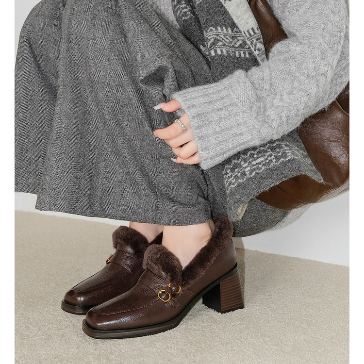 头层牛皮+羊毛~ 网红厚底深口单鞋