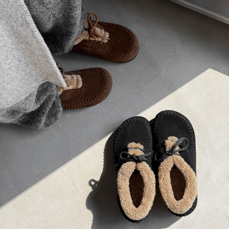 现货~ 博肯毛毛鞋~ 圆方头博肯真皮羊羔毛保暖单鞋