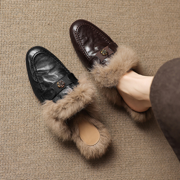 2025冬季新款新款新款兔毛拖鞋/头层羊皮+兔毛/爆款乐福鞋改版
