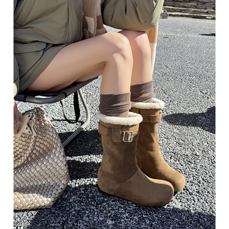 中筒版,内增高,软趴趴的底子,韩风皮带扣毛毛靴~