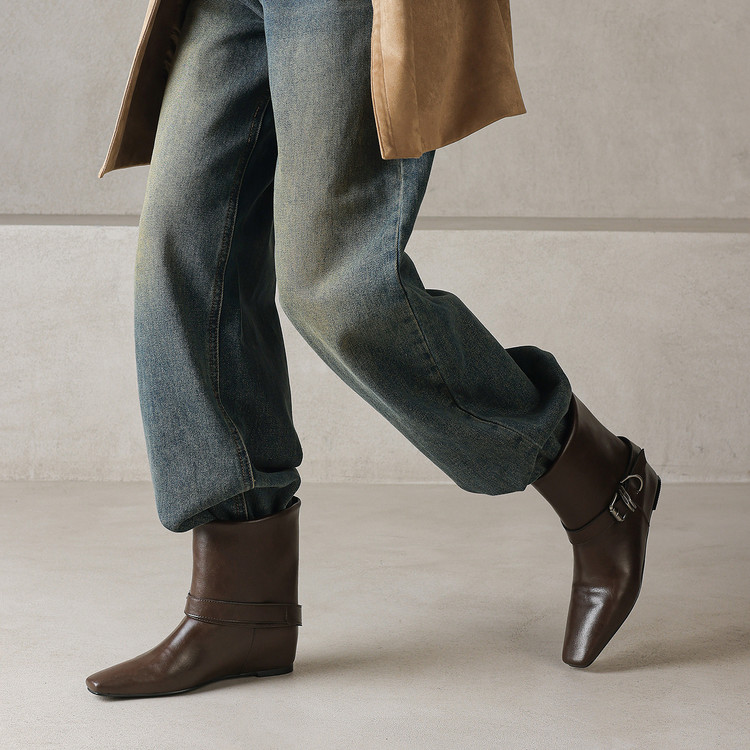 爆款老钱风增高靴子用料多一脚蹬双层筒