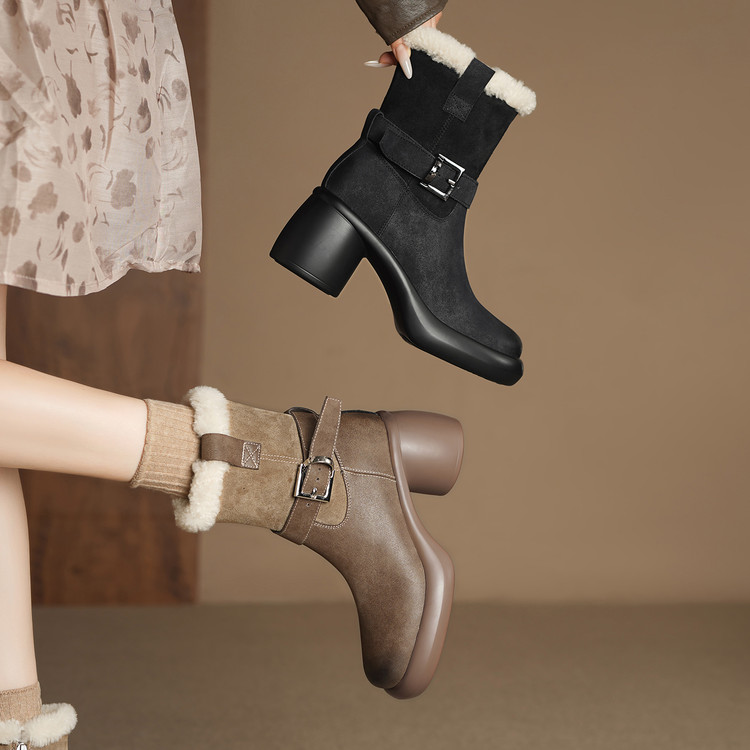 2025冬季新款厚底毛毛靴 冬季保暖神器