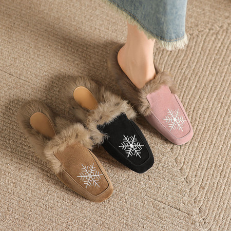 2025冬季新款兔毛拖鞋/三色入/头层羊翻皮+兔毛/数据款